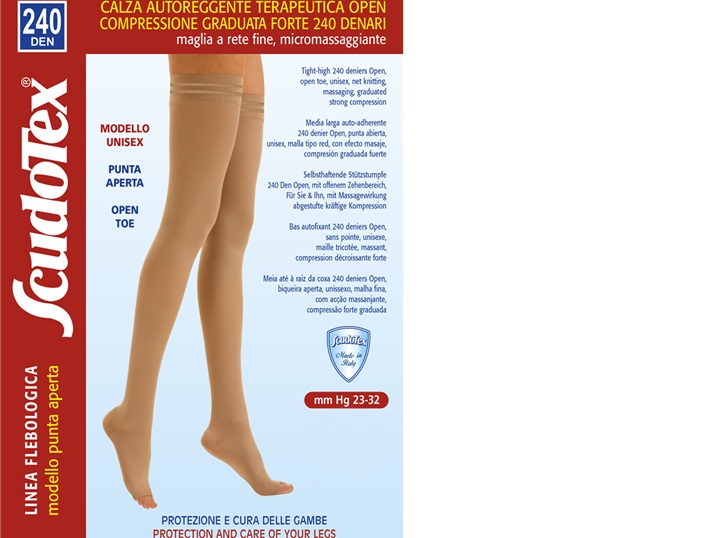 Thigh high 240 deniers, flebology line open toe mm Hg 23-32.