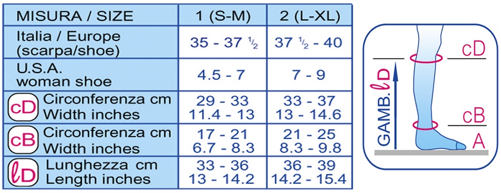 Knee high 40 deniers (mm Hg 7-9) transparent, with special soft elastic.